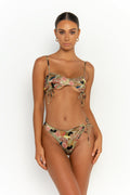 The Bea in Jaguar by Sommer Swim is a bralette bikini top with visible tie features, delicate gold hardware, adjustability for coverage with an embossed gold clip closure.