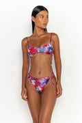 The Bea in Rococo by Sommer Swim is a bralette bikini top with visible tie features, delicate gold hardware, adjustability for coverage with an embossed gold clip closure.