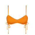 The Bea in Turmeric by Sommer Swim is a bralette bikini top with visible tie features, delicate gold hardware, adjustability for coverage with an embossed gold clip closure.