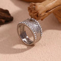 Vintage Hammered Zircon Signet Ring PVD Gold Plated Jewelry Stainless Steel Statement Jewelry