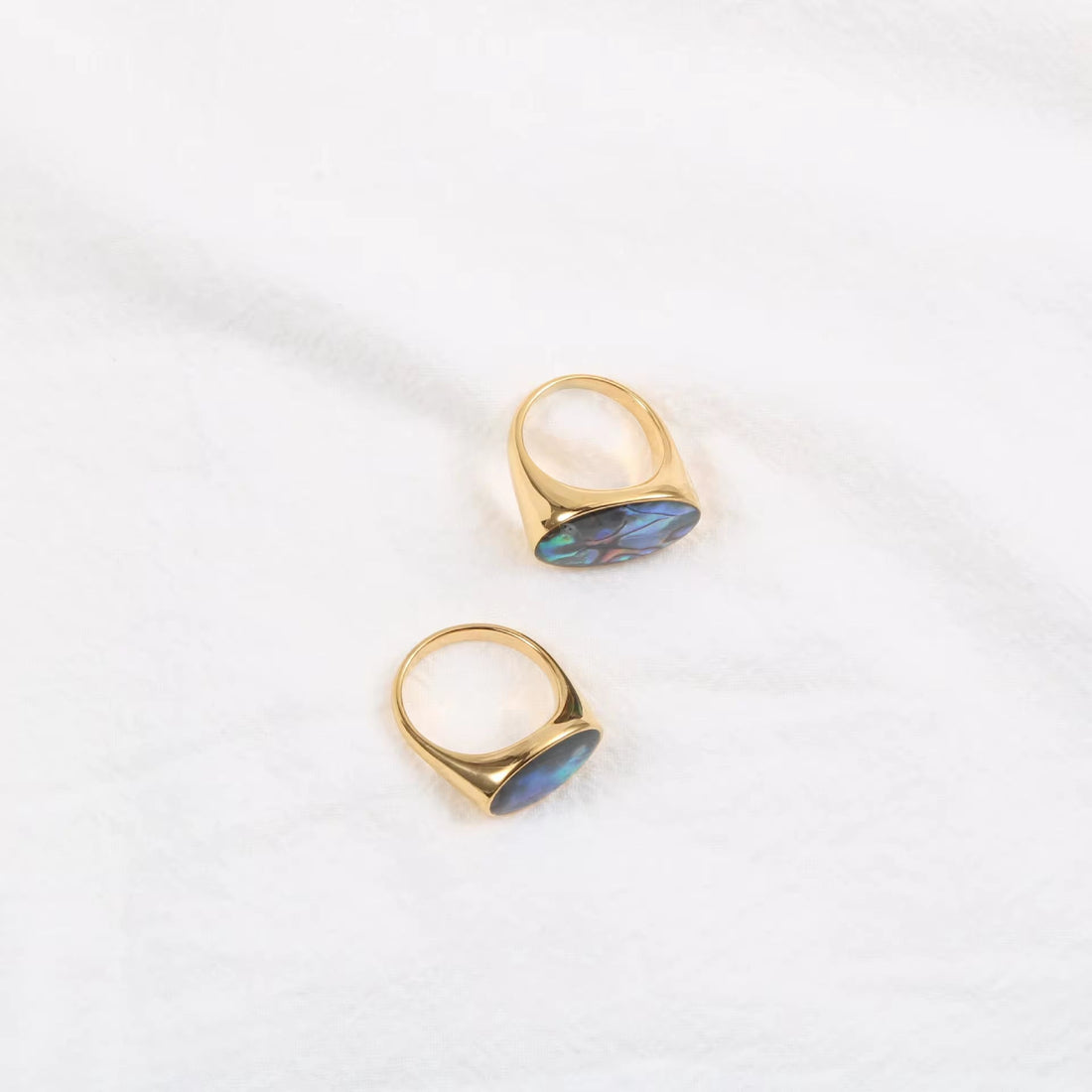 Waterproof 18K Gold Plated Oval Abalone Shell Rings Stainless Steel Jewelry Dainty round Natural Shell Rings