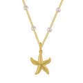 Make a statement with our By The Sea necklace! Whether you're wearing it for a beach day or a night out, its shimmering starfish pendant and pearl necklace will have you looking stunning with ocean-inspired summer vibes!
