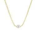 Adorn yourself with the Cherish Necklace. Featuring a stunning round CZ stone delicately placed on a classic chain, this necklace adds a touch of timeless elegance to any outfit. Show off your personal style and leave a lasting impression with this cute accessory.