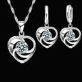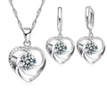 Diamond Heart Necklace & Earring Set 925 Sterling Silver Stamped Necklace Earrings Set Long Chain Sweet Romantic Style Love Heart Shape