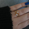 Looking for a chic and playful accessory? Meet the Bellagio Ring. This CZ stone ring boasts a unique dotted band and is waterproof for everyday wear. Stay stylish and carefree with this must-have piece!