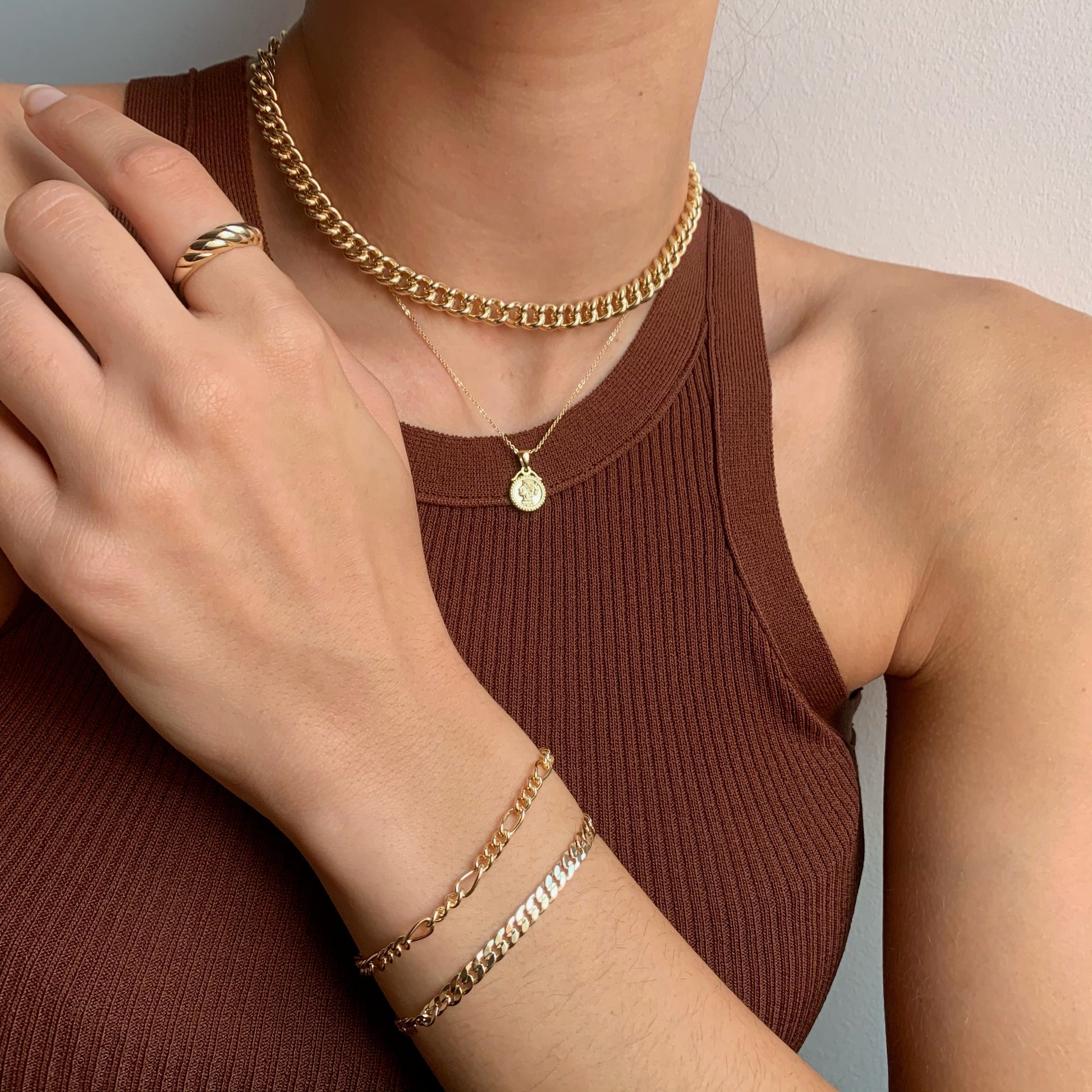 It’s a sin to be this cute. No one will be able to resist looking your way when you’re wearing this cuban link bracelet. Pair with the matching anklet and necklace to finish off this alluring set.