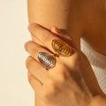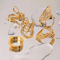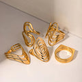 Geometric Jewelry Stainless Steel Ring Girls 18K Gold Plated Thin Lines Hollow Spiral Stacking Rings