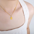 Geometric Oval GOOD LUCK Engraved Letter Pendant Necklace Gold 18K Stainless Steel Chain Necklace Women Jewelry