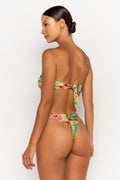 The Gigi in in Posidonia by Sommer Swim is a cheeky bikini bottom featuring two different sized gold rings and medium side bands that create a flattering shape.