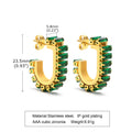 Good Quality 18K Gold Plated Green Cubic Zircon Earrings Deliate No Fade Stainless Steel Bling Diamond U Shape Earrings