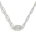 Add a touch of cute elegance to your outfit with the Monet Necklace. This necklace features a large link chain and a center link filled with sparkling stones, creating a dainty and charming look. Elevate any look with this must-have accessory.