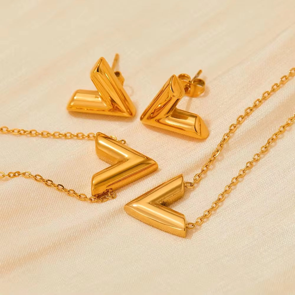 Vacuum Plating Letter V Stud Earrings Chic No Fade V Shape Stainless Steel Earrings for Women Girls