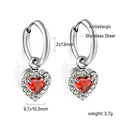 Vintage Bling Rhinestone Heart Dangle Hoop Earrings For Women Stainless Steel Ear Cuffs Colorful Zircon