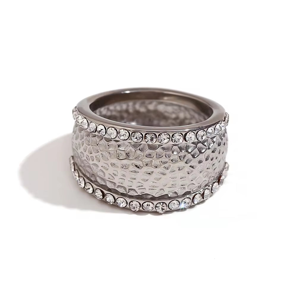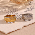 Vintage Hammered Zircon Signet Ring PVD Gold Plated Jewelry Stainless Steel Statement Jewelry