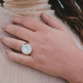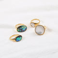 Waterproof 18K Gold Plated Oval Abalone Shell Rings Stainless Steel Jewelry Dainty round Natural Shell Rings