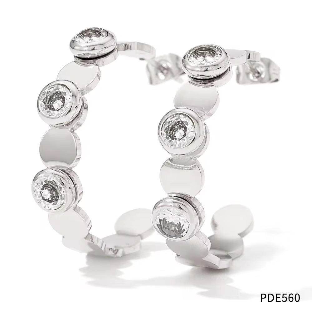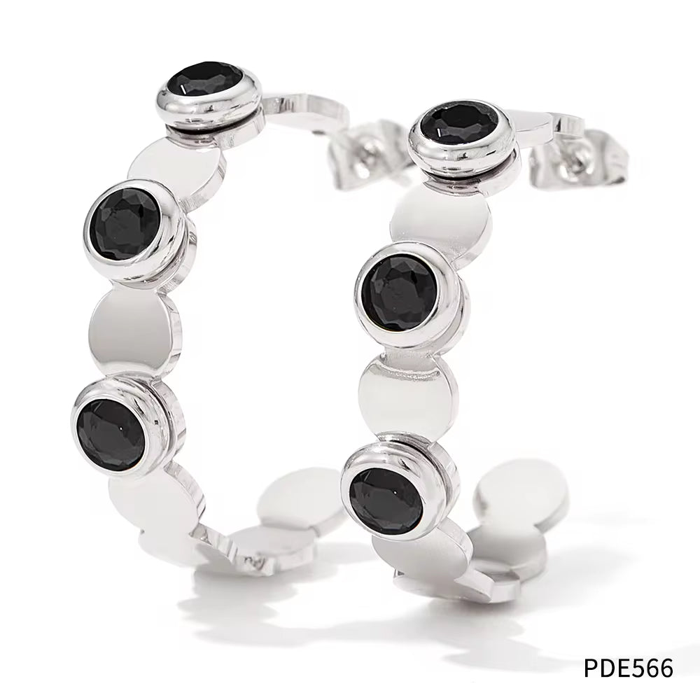 Waterproof Charm Fashion Jewelry 18K Gold Plated Stainless Steel Green Colorful Cubic Zirconia Hoop Earrings Women