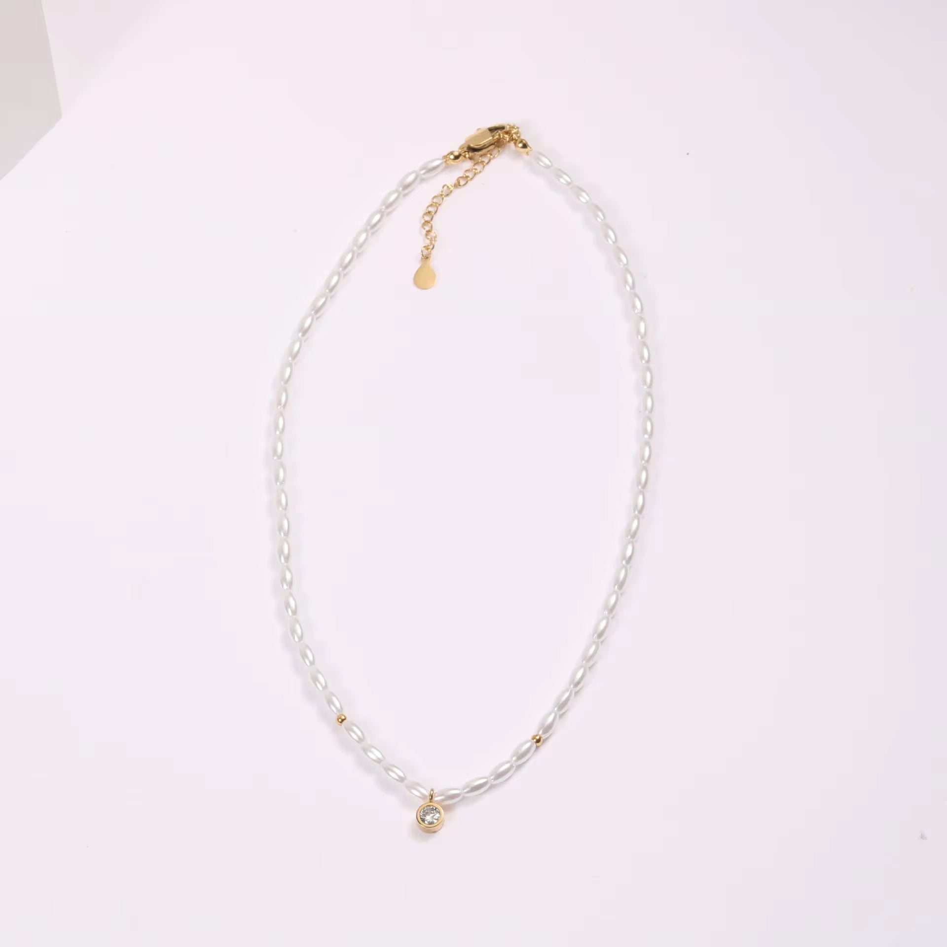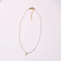 Waterproof Stainless Steel Seed Bead Choker Necklace Fashion Baroque Freshwater Pearl round Zircon Pendant Necklaces
